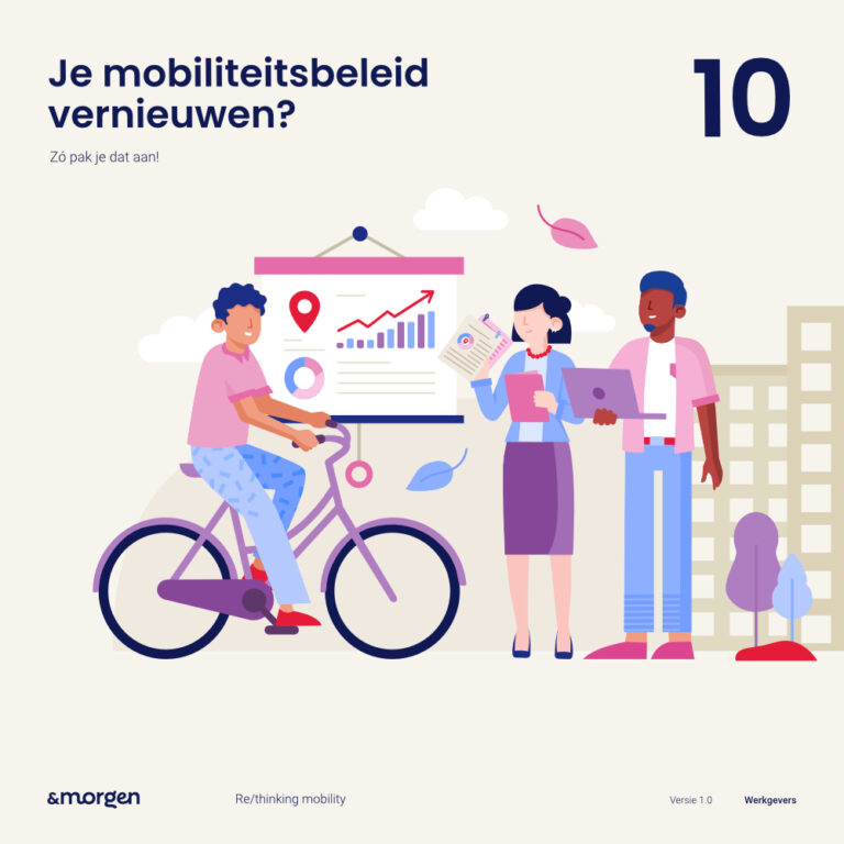 Bij &Morgen creëren we met duurzame mobiliteit meer ruimte voor mensen, nu en voor toekomstige generaties. Ruimte om te werken, reizen en groeien. De mens staat altijd centraal bij het effectief oplossen van mobiliteitsuitdagingen. Daarom zijn communicatie en gedragsverandering essentiële onderdelen voor het succes van je beleid, verandering of aanpak. Hieronder lees je meer over onze thema’s binnen de duurzame mobiliteit.
